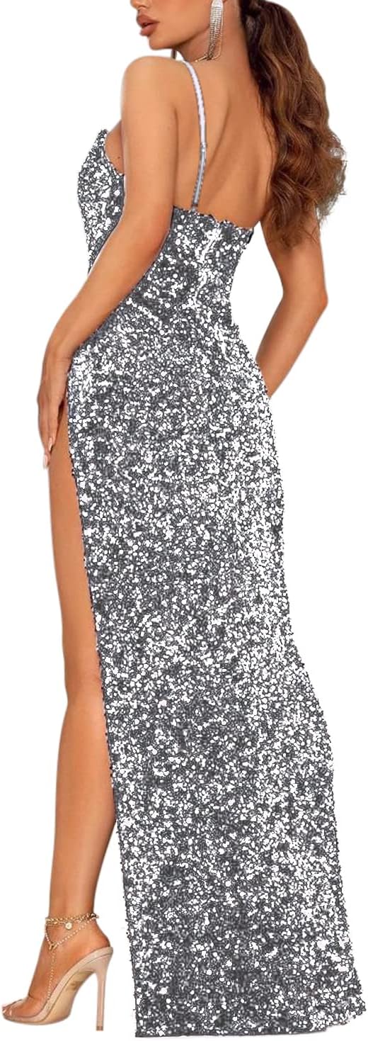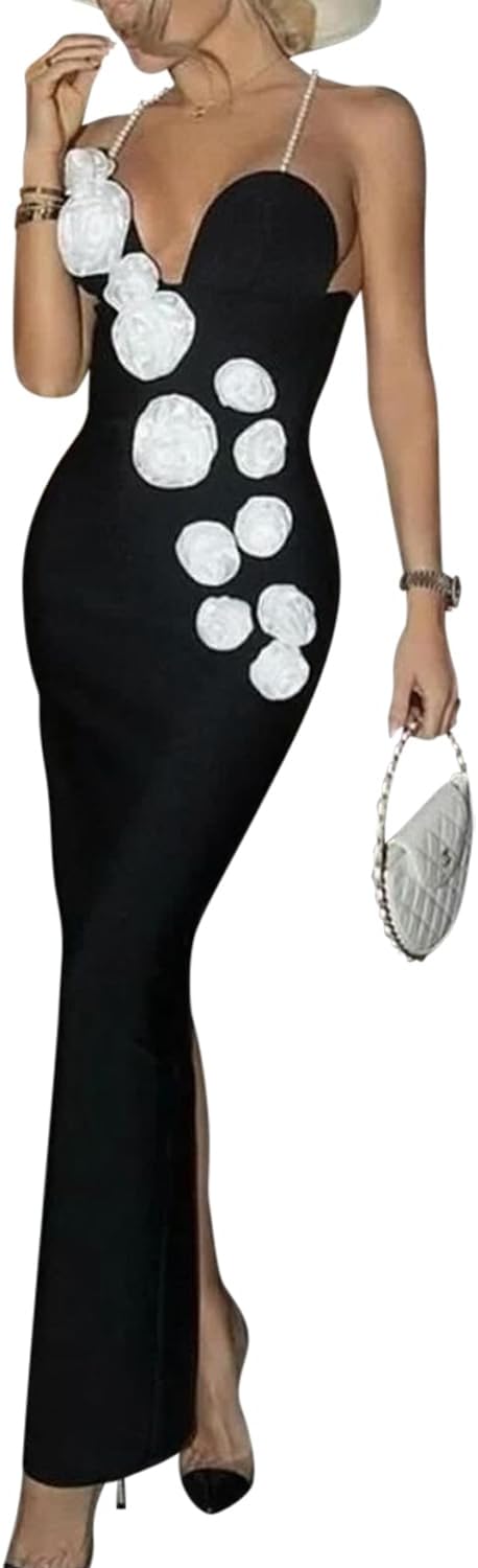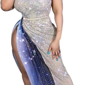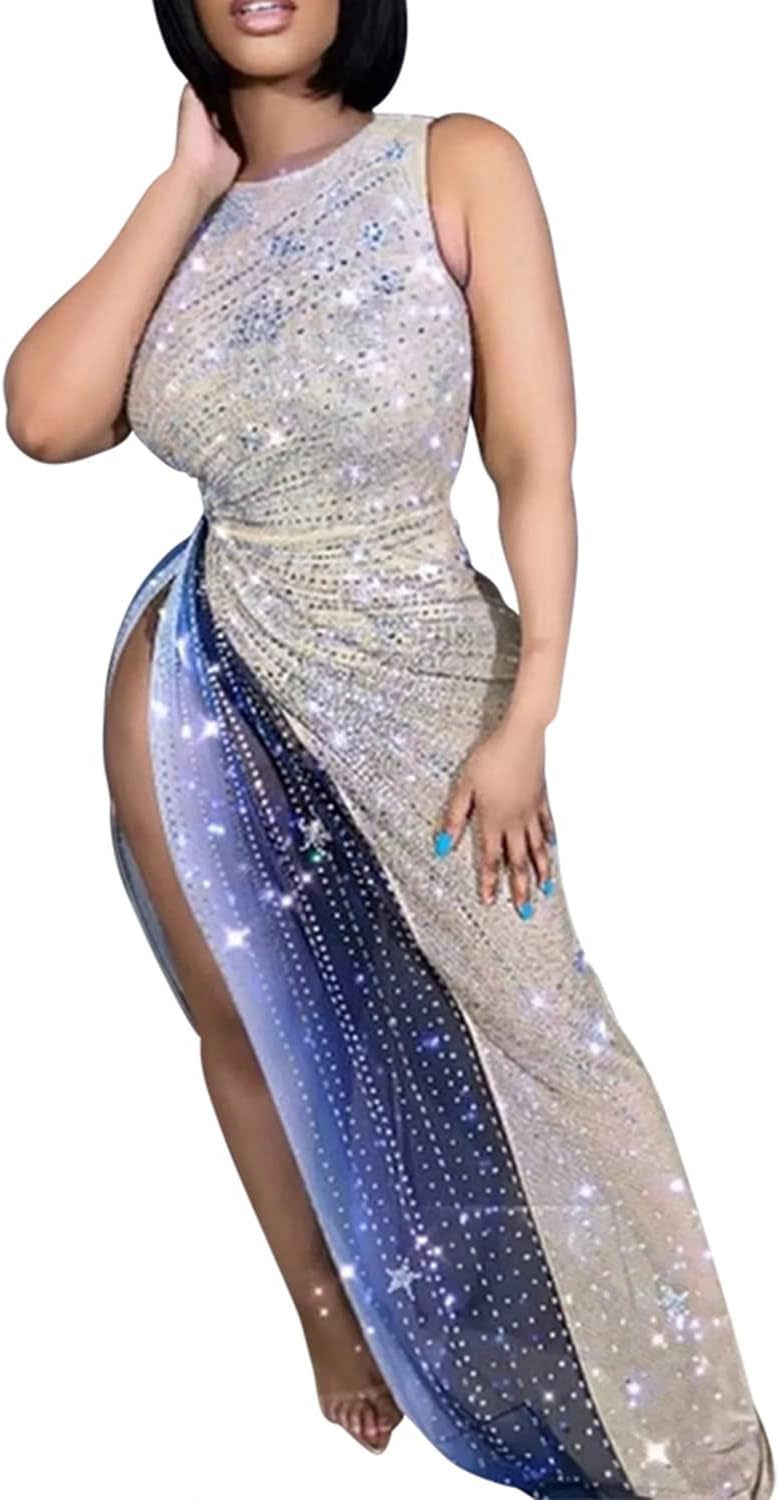 Women Sleeveless Off Shoulder Split Evening Cocktail Long Dress