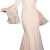 Women’s Off-The-Shoulder Lace Chiffon Dress Ruffled Sequined Maxi Gown Evening Party Dress