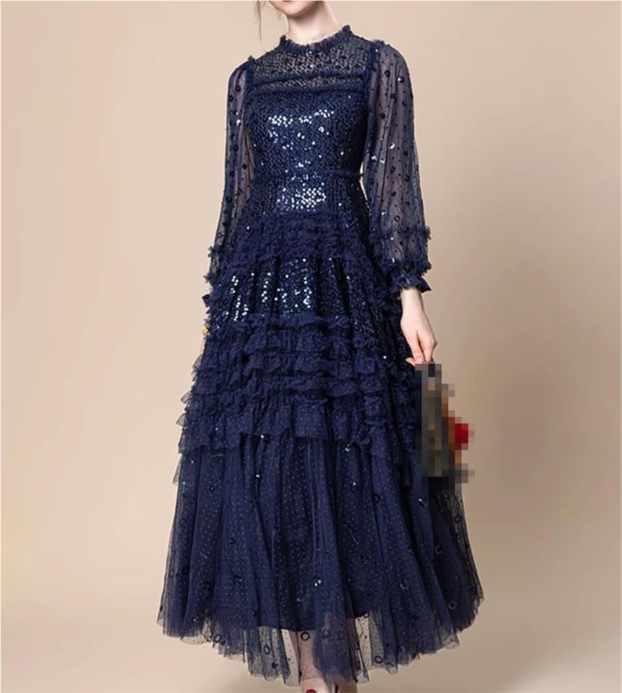A-Line Dress Lace Design High Waist Wrap Dress Perfect Waist Curve Flowing Long Skirt