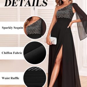 YHHOWEP Women’s Sparkly Sequin Dress Glitter One Shoulder Split Bridesmaid Cocktail Formal Evening Gowns Ball Dresses