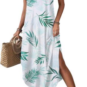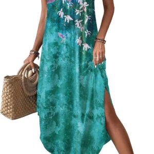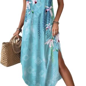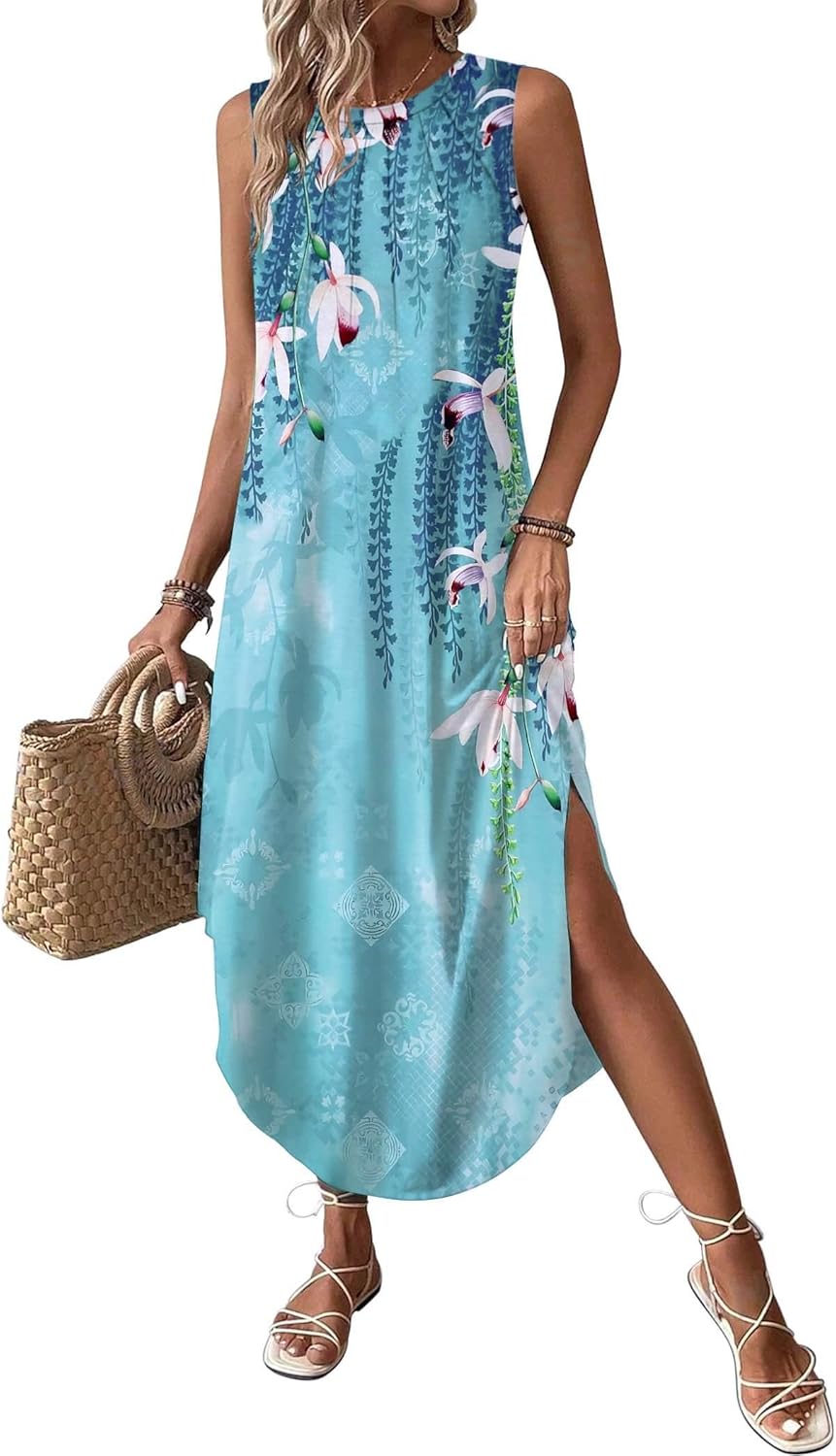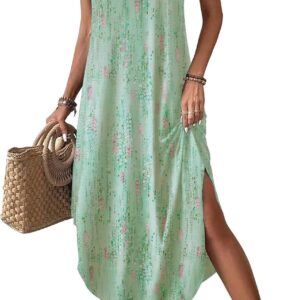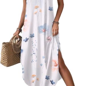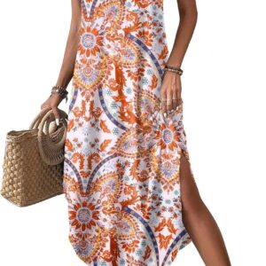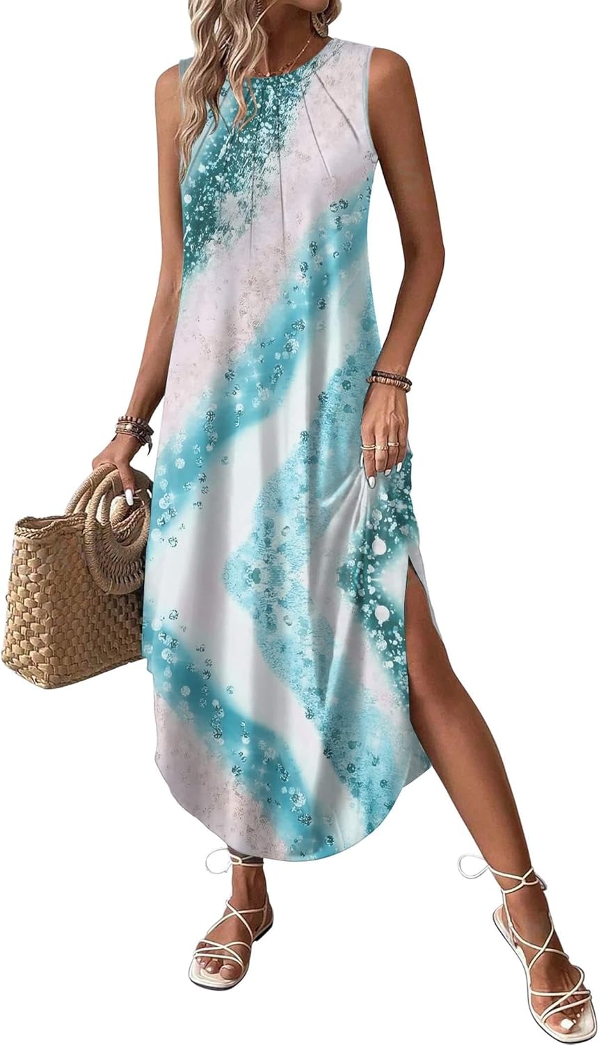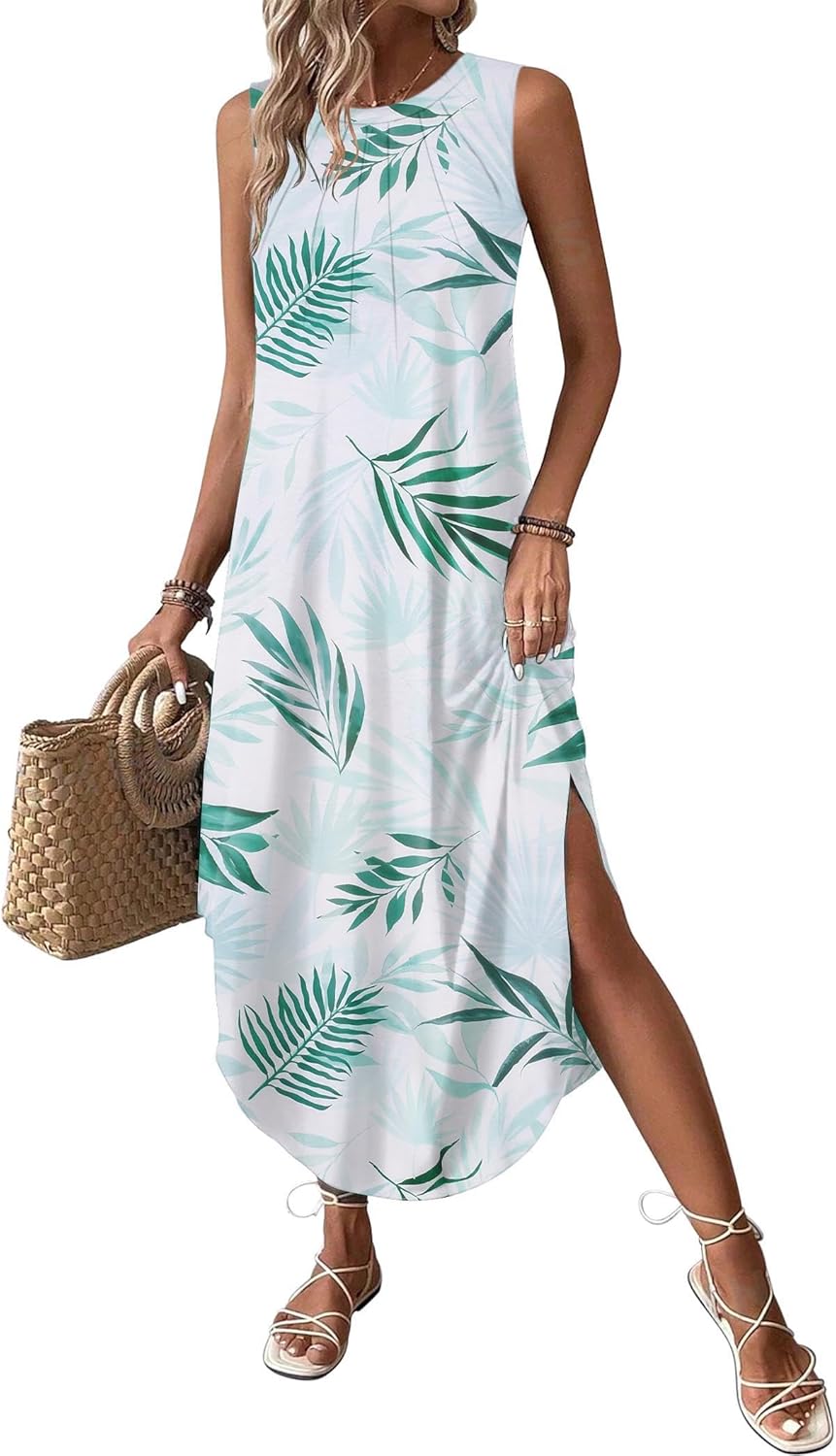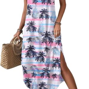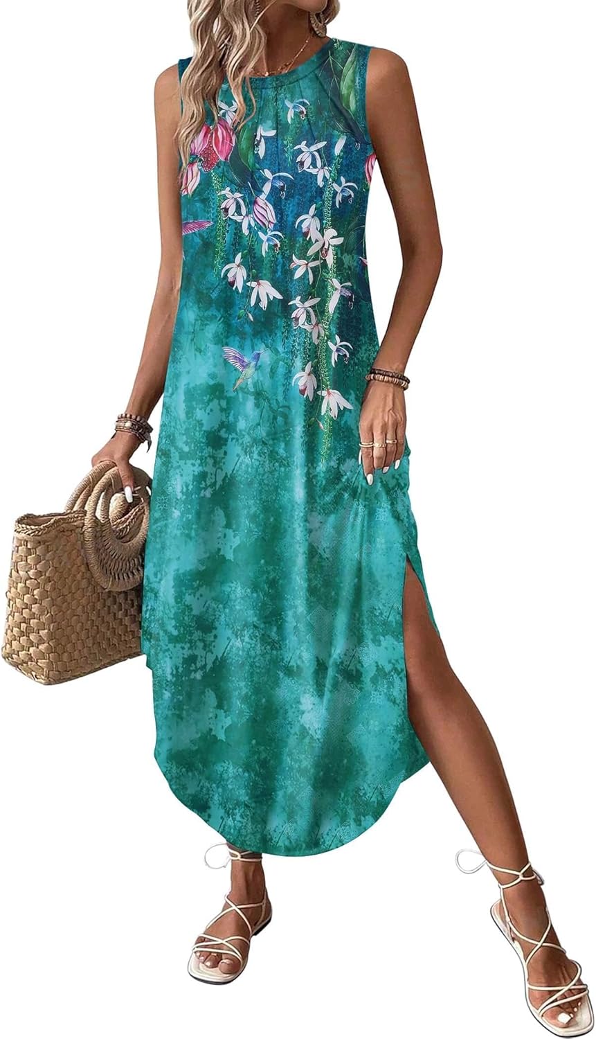 Zeagoo Women Floral Summer Casual Beach Printed Tank Dress with Pockets Pleated Front Long Dress