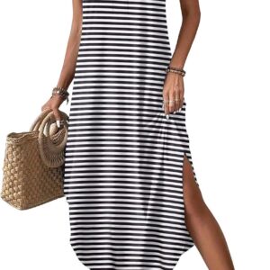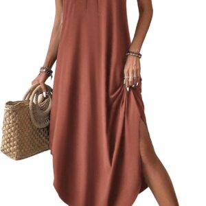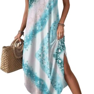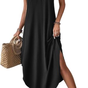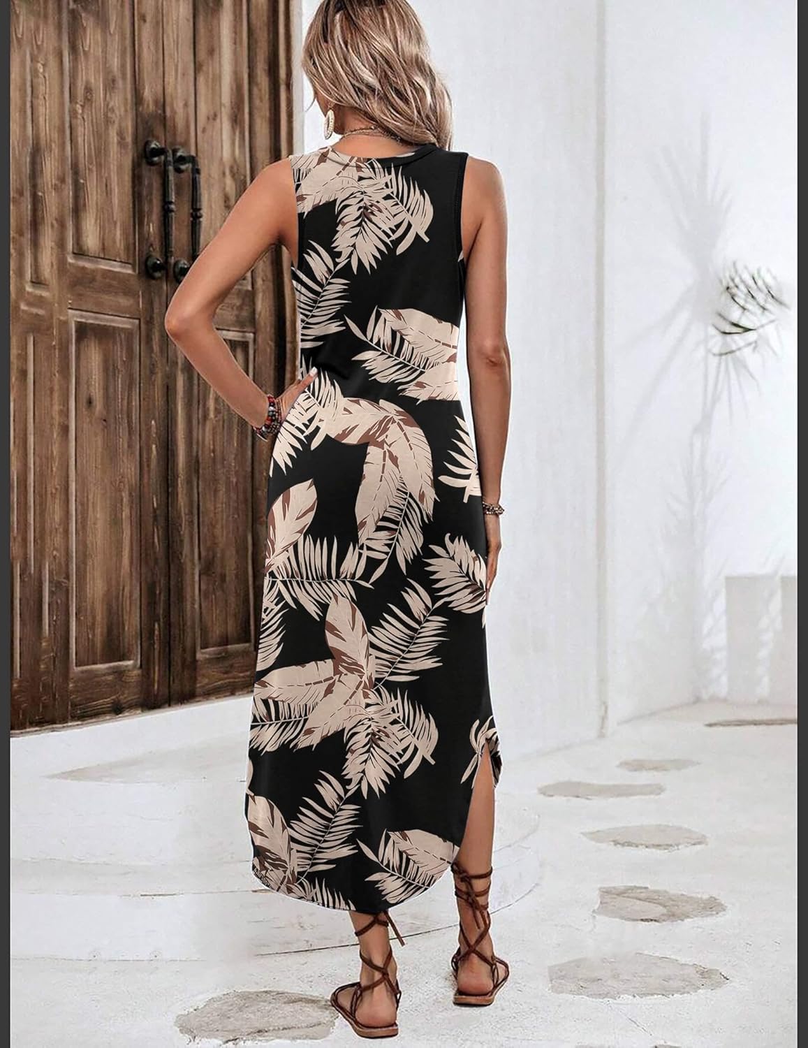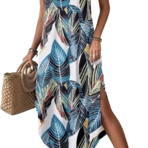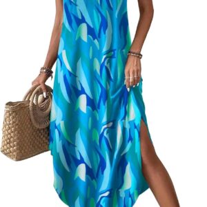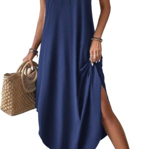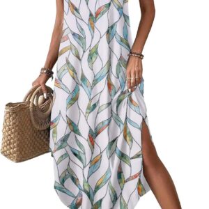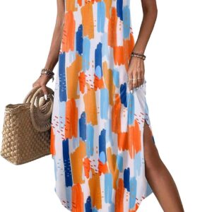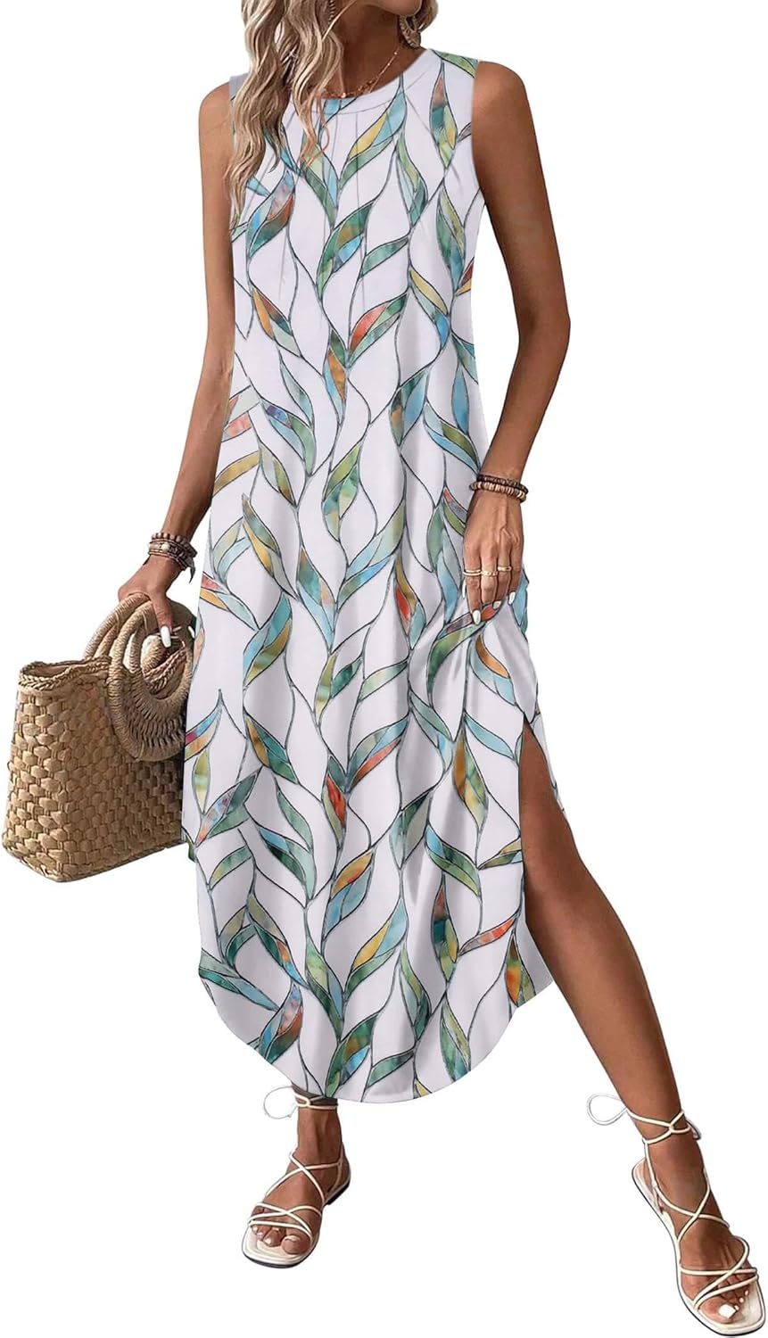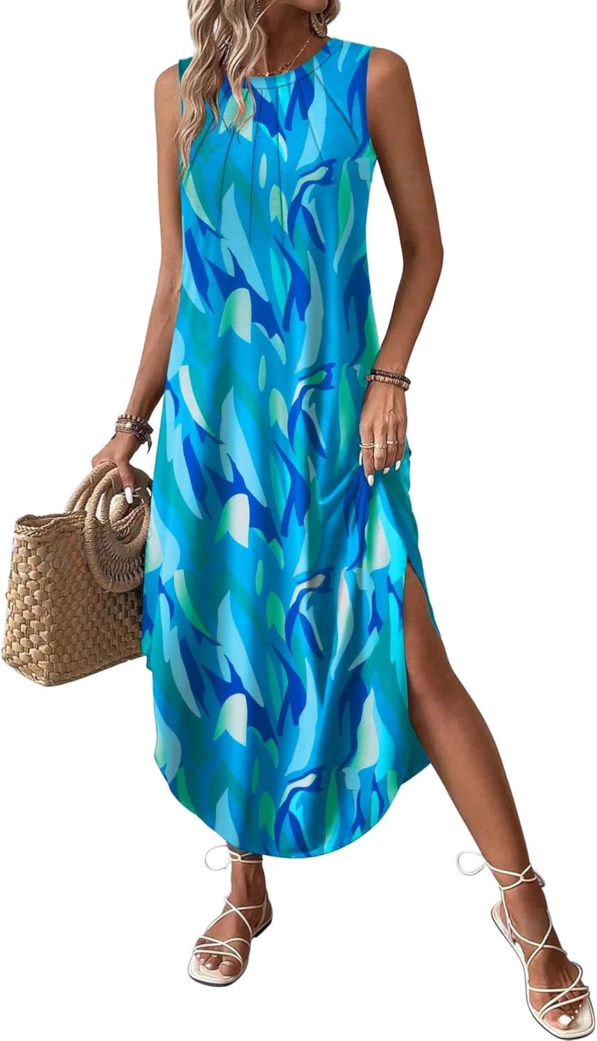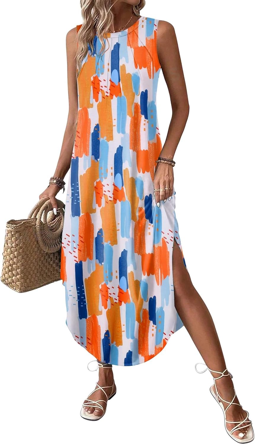 Zeagoo Women Floral Summer Casual Beach Printed Tank Dress with Pockets Pleated Front Long Dress