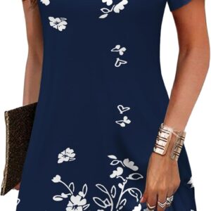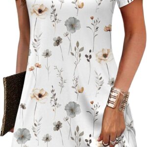 Zeagoo Short Sleeve Vacation Dress Summer Casual Floral Printed T Shirt Dresses