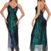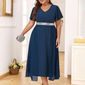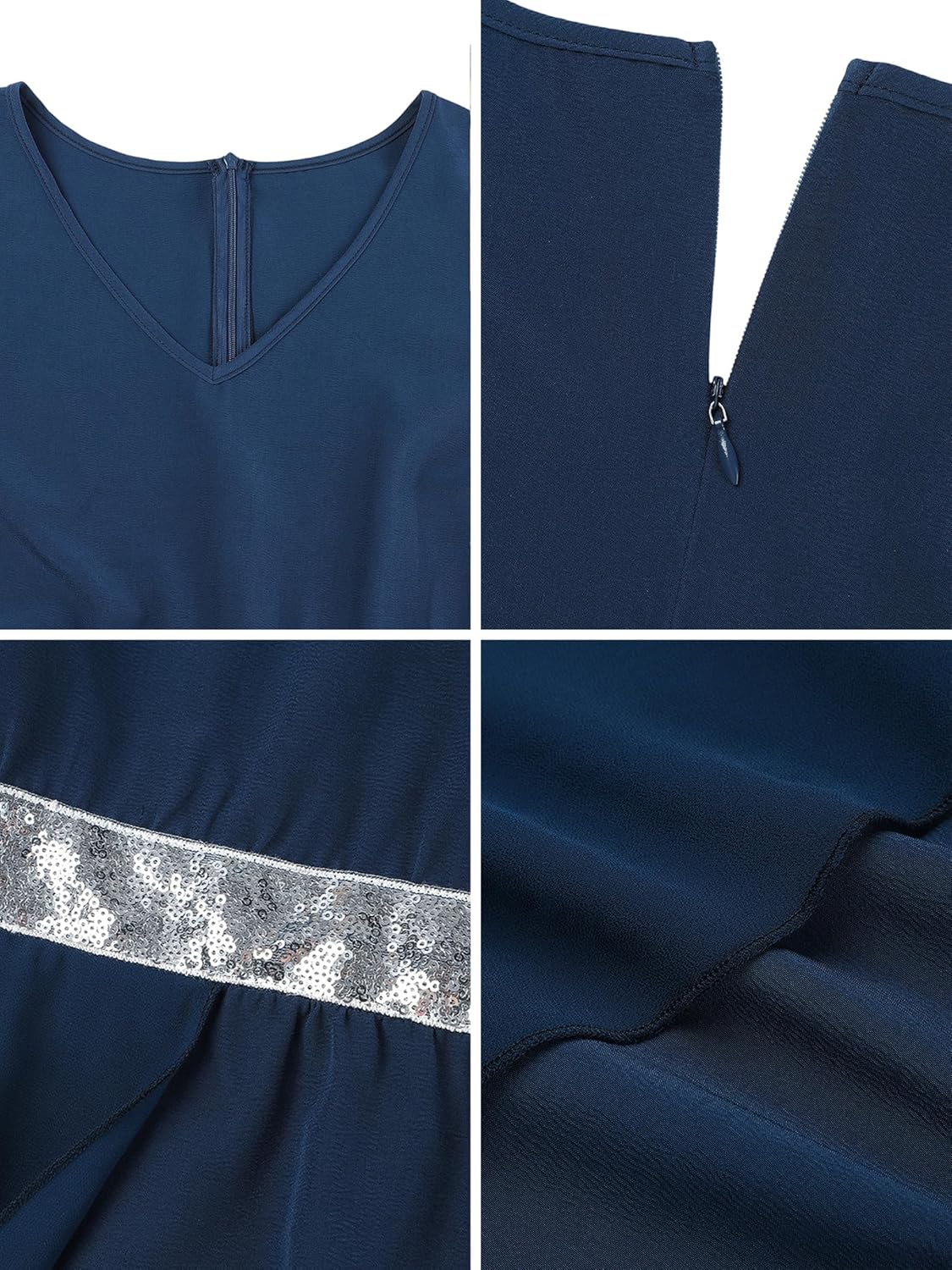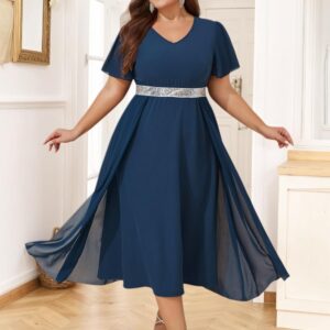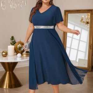 Plus Size V-Neck Evening Gown Sequins Dress Mesh Midi Dresses